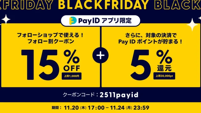 お知らせ 【Pay IDアプリ限定】BLACK FRIDAYキャンペーン|2025年11月20日〜24日 こんにちは。 いつもKAMI.llcをご利用くださり、ありがとうございます! このたび2025年11月20日(木)より、「Pay IDアプリ」限定の「Pay ID BLACK FRIDAY 2025」を開催いたします。 今回は、【... 2025.11.17 お知らせ
